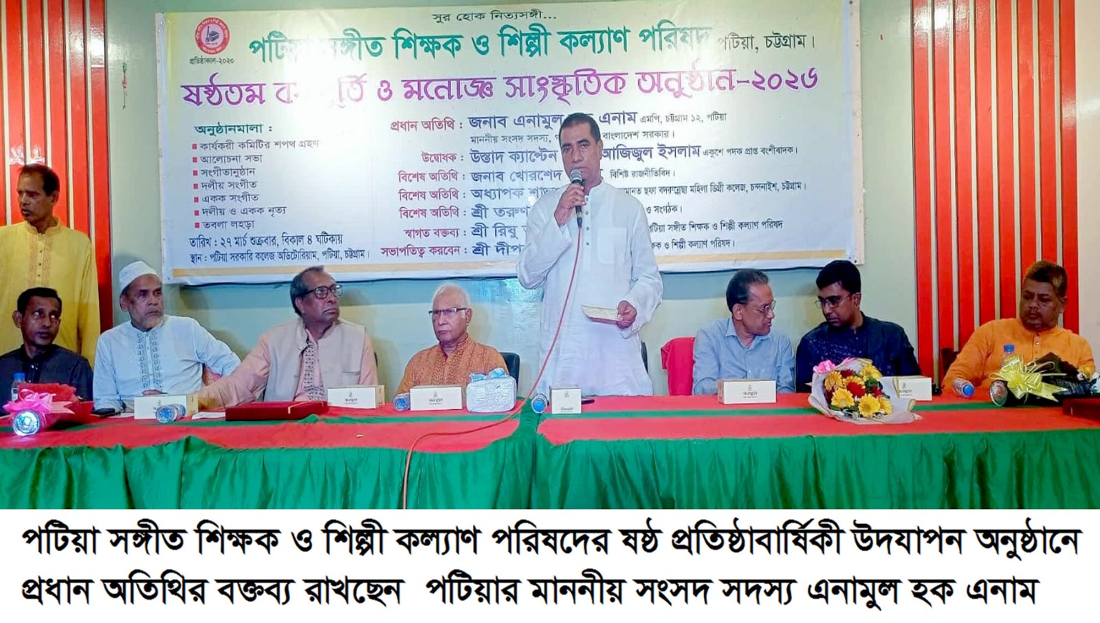 পটিয়া সঙ্গীত শিক্ষক ও শিল্পী কল্যাণ পরিষদের প্রতিষ্ঠাবার্ষিকীতে বর্ণাঢ্য অনুষ্ঠান সম্পন্ন